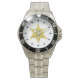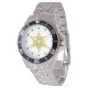 Este relógio é decorado com um crachá de seis pontas do xerife de ouro e pode ser personalizado com um nome.