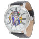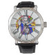 Relógio Vidro manchado com Design de Numerais Romanos.