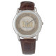 Três colmeias modernas num fundo de marfim com um perímetro de kraft. Pequenas abelhas de mel em voo acima das colmeias. Faz um presente elegante e maravilhoso para apicultores e apicultores. Belo relógio de pulso para vestir no mercado do agricultor e em feiras locais.