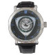 Assista com uma pulseira preta de couro e a imagem de um alcatrão no fundo