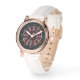 A imagem acima apresenta um visual impressionante de uma face futurista, onde a cronometria transcende a função e se aventura no reino da arte abstrato. Banhada em profundidade e contrastada com laranja vibrante e branco estrelado, o design circular pulsa com senso de movimento dinâmico e elegância cósmica.
