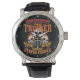 This bold and humorous wall clock serves as a clear warning from a no-nonsense truck driver. Against a black background with a yellow rim, it features a menacing design of three skulls with flames and a truck grille in the center. The text, in distressed orange and white, reads: "WARNING THIS TRUCKER DOESN'T PLAY WELL WITH STUPID PEOPLE". This clock is perfect for a driver with a strong personality and little patience for foolishness. You can customize the color of the frame to any color you desire by going into the design tool.