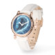 Elegant rose gold vintage watch with a white leather strap, featuring the matching half of the eagle heart. A sophisticated and timeless symbol of eternal love.