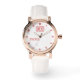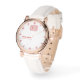 personalized watch, white dial, rose gold watch, elegant wristwatch, white leather strap, monogram gift, custom initials, luxury accessory, timeless design, stylish women