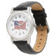 Classic Black Leather Women's Watch with American Flag Design