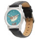Um desenho a lápis a cores de uma pequena mulher enfeita este relógio!