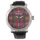 relógio de pulso da pulseira em na moda, com o clássico clã colorido MacPherson, padrão de xadrez tartan, na face, com números brancos e pontos durante as horas. O texto personalizado branco lê MacPherson e pode ser personalizado para ler o que você quer.