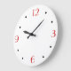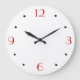 Um relógio redondo branco muito simples com Números Romanos Vermelhos. Ponteiros pretos e pontos para outros marcadores de tempo. Este relógio pode ser personalizado para alterar o tamanho e a cor. Disponível também em formato quadrado.