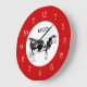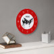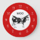 O relógio da cozinha de vaca de campo bonito tem a imagem de uma vaca vetora preta e branca na face do relógio, neste design de relógio decorativo de decoração de parede para a sua cozinha, banheiro ou qualquer quarto na sua casa que você queira adicionar algum caráter e estilo. As cores incluem vermelho, preto e branco.