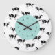 Relógios de cozinha de vaca de campo bonito com padrão de vacas vetoras preto e branco em toda a face do relógio nesta design de relógio decorativa de decoração de parede para a sua cozinha, banheiro ou qualquer quarto na sua casa você quer adicionar algum caráter e estilo. As cores incluem branco, preto e bege.