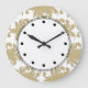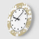 Relógios de parede bege úmido com cor damasco bege face neste design de relógio decorativo de decoração de parede para a sua cozinha, banheiro ou qualquer quarto na sua casa que você queira adicionar alguma cor e personagem. As cores incluem o bege, o castanho e o branco.