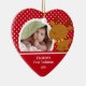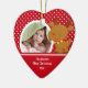 Os enfeites de natal bonitos da foto que caracterizam uma rena adorável com polca vermelha um fundo pontilhado, apenas adicionam SUA FOTO! Aperfeiçoe para o primeiro Natal & o segundo Natal. Um presente do Natal da maravilha sure a ser estimado por muitos próximos anos. gráficos do ©zenware