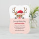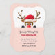 Um convite adorável a uma festa de aniversário da estação do Natal. O cartão caracteriza uma rena que veste o boné do papai noel que espreita sobre uma borda macio-cor-de-rosa. (<a href="https://www.freepik.com/free-vector/reindeer-in-santa-hat-peeping-out_1430479.htm">Projetado por Freepik</a>). <br/><br/>O cartão é fácil de personalizar com seu fraseio, cor do andfont da pia batismal<br/><br/>Não exatamente que você está procurando? Todos nossos produtos podem ser projetados para encontrar suas necessidades em nenhuma sobretaxa<br/><br/>Contacte-nos simplesmente em askcottonlamb@gmail.com. <br/><br/>Produtos de coordenação disponíveis: Apenas pergunte-nos!