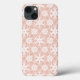 Um padrão digitalmente aprimorado e colorido baseado em renda antiga - branco sobre um fundo suave de pêssego