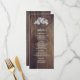Elegante renda branca com efeito de madeira de celeiro rústico no fundo do cartão personalizado de menu de casamento. Convites de casamento, convites para chá de noiva, cartões "Save the Date", cartões de pedido para damas de honra, cartões de agradecimento, lembranças e presentes de casamento disponíveis na categoria de design rústico de nossa loja.