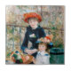 "Duas irmãs (no terraço)" foram pintadas por Pierre-Auguste Renoir em 1881. Renoir era um artista francês e um pintor principal no desenvolvimento do estilo impressionista. A mim esta pintura é uma alegria. É uma celebração maravilhosa da cor assim como é uma homenagem à primavera, à juventude e à beleza. Intitulado original "duas irmãs," a pintura foi dada seu segundo nome, "no terraço," pelo comerciante de arte e pelo consumidor dos impressionista, Paul Durand Ruel, seu primeiro proprietário. Renoir era aparentemente satisfeito com este segundo título desde as duas meninas, assuntos da pintura, não era realmente relacionado. A pintura é ajustada no terraço superior do restaurante Fournaise que negligencia o Seine.