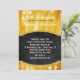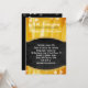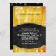 Convites modernos de renovação de votos de aniversário de 50 anos com esquema de cores dourado e preto - Lê 'Aniversário de 50 anos' no topo em letras brancas elegantes. Fundo com aparência de tecido de seda ou cetim dourado falso com grandes luzes bokeh brancas espalhadas na parte superior e inferior. Personalizado com os nomes do casal em letras elegantes e combinando. As informações personalizadas da festa de aniversário são impressas em letras brancas e emolduradas em quadro-negro falso com borda dourada brilhante. A parte de trás tem aparência de tecido de cetim dourado falso com borda bokeh branca na parte superior e inferior. Convites elegantes de renovação de votos de casamento prontos para serem personalizados. Complementa festa de aniversário elegante, aniversários dourados modernos, temas bokeh, aniversário de casamento de 50 anos dour