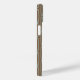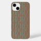 Esta capa de telefone tem um design de geometria de uma espécie de ovais de ponta plana se repetindo através do design em azul pálido em um campo de marrom.
