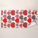 Este conjunto de toalhas tem um pano de lavagem de rosa claro, uma toalha vermelha de mão e uma toalha de banho com design de repetição de corações de Namorados com diferentes dentro gráficos num campo de branco.