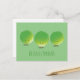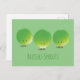Cartão postal com personagens de repolho de Bruxelas sorrindo. As palavras podem ser personalizadas.