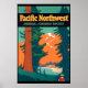 Pacífico Noroeste americano e roquinhos canadenses. Arte de viagem de publicidade colorida. Uma reprodução cuidadosamente restaurada.