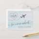 Cartão postal de adiamento do casamento do Destino de Praia permite que seus convidados saibam de forma engraçada e humorística que sua localização ou data de casamento (ou ambos) precisa ser remarcada ou alterada devido a restrições de viagem, enquanto você ainda está descobrindo como mudar os planos de casamento. A bela textura azul-turquesa aqua funciona para muitos temas de viagem e cores de praia, e nosso logotipo único de monograma de avião tem dentro com fontes divertidas e modernas de escrita de caligrafia e uma combinação de interessante tipografia. Visite o Compro Designer do Zazzle Destinos de Fita de Papel para mais convites para o casamento sobre temas de viagem e praia, salve as datas e adie os anúncios.