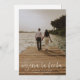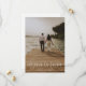 Este casamento fotográfico moderno salve o cartão plano de data tem um design quente e minimalista. A frente apresenta um texto animado de script acima de seus primeiros nomes e data. No verso, definimos o plano de fundo como transparente, para que a cor do papel sirva de base. Você pode escolher uma cor para o plano de fundo, se preferir. Você também pode editar o texto de acordo com as suas necessidades. Talvez você queira excluir um campo de texto que não precisa ou alterar a cor ou a fonte de algum texto. Use as ferramentas intuitivas de design, sua foto favorita e sua inspiração para fazer com que este casamento de na moda salve a carta de data chata exclusivamente sua!