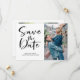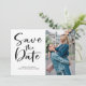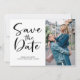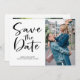 Modern 2 foto-casamento Salve o cartão de data com texto em uma fonte moderna de script de pincel. Avise os amigos e familiares sobre seu encontro e onde você vai se casar para que eles possam começar os planos de fazer.