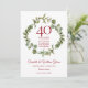 Com uma elegante grinalda de verde silvestre, este cartão de bodas de 40 anos de casamento com tema botânico elegante pode ser personalizado com as suas informações especiais de aniversário de rubi. O verso apresenta uma grinalda floral combinando, enquadrando as datas de aniversário em texto branco elegante sobre um fundo vermelho rubi. Concebido por Thisisnotme©