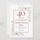 Apresentando delicadas folhas de aquarela, este chic salva o convite de aniversário de data pode ser personalizado com suas informações especiais de comemoração de 40 anos, com um fundo rubi no sentido inverso. Projetado por Thisnotme©
