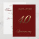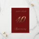 40º Aniversário de Casamento, Aniversário ou Jubileu de Aniversário, Cartão de Salvar a Data com Tipografia de Letra à Mão com Fundo Vermelho Rubi e texto personalizado no verso com visual Elegante em Dourado.
