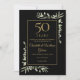 Com delicadas folhas de verdejante jardim campestre em aquarela em um fundo preto com os detalhes da celebração definidos em um texto moderno em ouro. Este convite de aniversário de casamento chic pode ser personalizado com as suas informações especiais de 50 anos de aniversário, com um fundo dourado no verso. Concebido por Thisisnotme