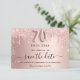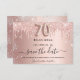 Uma placa feminina Save the Date para uma festa de aniversário 70. fundo rosa de gradiente dourado decorado com rosa dourado e gotas luminosas de prata sujas. Personalize e adicione uma data e um nome/texto. O texto: Salvar a Data é gravado com um script de estilo com letra de tendência grande com alternâncias. Número 70 com uma fonte no estilo do balão.