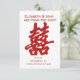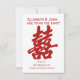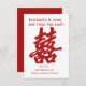 Este Cartão de Datas de Segunda Felicidade Moderna consiste no caractere "dupla felicidade" em chinês em cintilação vermelha, e nomes personalizáveis, data e local.