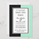 Maneira elegante, moderna e na moda para fazer um de seus anúncios mais importantes. Este convite SAVE THE DATE está num esquema moderno de menta e cor preta. O verso das Escrituras vem de Mark 10:8. O inverso é um plano de fundo NEO MINT com um padrão sutil dizendo SAVE THE DATE. Personalize seus detalhes na frente. Itens correspondentes disponíveis.