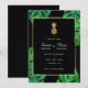 Cartões salve a data de abacaxi tropical em preto e ouro, parte da nossa coleção de papelaria de abacaxi tropical. Apresentando folhas tropicais de cor aquosa em fundo com sotaques falsos de folha de ouro.