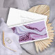 Este conjunto de design de casamento, com seu padrão abstrato de ondulações e veias que fluem de ameixa brilhante, traz à mente formações rochosas que chamam a atenção e gemas cintilantes. A paleta de cores impressionante em tons de lilac e lavanda a soft periwinkle acrescenta ao apelo. O cartão Save the Date mostrado aqui tem todos os itens acima com um layout que o faz sobressair da multidão. Adicione facilmente os detalhes do evento usando o modelo fornecido. Procure ID903 para ver outras opções de cores e peças de coordenação para esta coleção de casamento única.