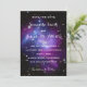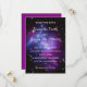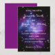 Uma bela foto espacial de aglomerado de galáxias roxa e azul com um design de texto de save the date de casamento em caligrafia contemporânea branca. Crie seus próprios cartões de convite personalizados para um casamento em planetário, ou outro local cósmico. Todas as áreas de texto neste produto de papel podem ser personalizadas. Há muito espaço para mais informações conforme necessário. O verso é uma cor roxa sólida coordenada, mas você pode alterar a cor ou copiar e colar a imagem espacial naquele lado. Tente uma orientação diferente para a imagem espacial se desejar.