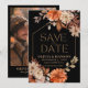 Anuncie seu próximo casamento com elegância e simplicidade usando este cartão de Save the Date de outono floral em aquarela preta com foto. Este design sofisticado apresenta um fundo preto elegante combinado com uma fonte de letra moderna, mostrando uma foto querida do casal. Perfeito para um anúncio contemporâneo e estiloso, fornece uma maneira chique e memorável de informar seus convidados sobre o seu dia especial.