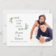 Cartões de casamento de estilo pastel elegante com aquarela de holly natal, save the date, apresentando eucalipto, visco e pinheiro complementados por um verso com lavagem de aquarela em cor menta.