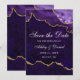 Cartão de Anúncio de Noivado com Geodo de Ágata em Mármore Roxo Violeta e Dourado em Aquarela Moderna e Elegante