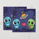 Este design fora deste mundo mostra personagens alienígenas adoráveis e OVNIs enviando mensagens em forma de coração entre si através de um pano de fundo cósmico. Os aliens vêm em várias formas e cores, cada uma com seu encanto exclusivo. O fundo da galáxia brilha com estrelas e nebulosas. Isso se encaixa melhor para entusiastas de ficção científica, crianças interessadas no espaço, e qualquer um que ama uma mistura de temas fofos e cósmicos. Adequado para eventos planetários, convenções de ficção científica, festas com temas espaciais infantis e lançamentos tecnológicos peculiares.