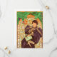 Cartão com a poster litográfica de Alphonse Mucha Lorenzaccio (1896). O eponímico Lorenzaccio da peça, em que as estrelas Sarah Bernhardt, está vestido de roxo e preto, segurando um livro. Um dragão verde o ignora. Um presente de excelente para fãs de Arte Nouveau e de Arte Checa.