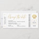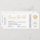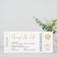 Cana de ouro em uma passagem mínima e moderna do avião de embarque "mude a data" anúncio de destino de praia para um casamento que foi adiado ou remarcado. Toda a redação na parte inferior da passagem é editável para que você seja criativo e se ajuste perfeitamente à sua localização de casamento ou várias línguas. O estilo foi feito para elogiar um visual mais formal de casamento na praia enquanto ainda se divertia com um olhar de beira e tema de viagem.