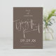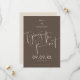 Uma forma moderna de convidar os seus convidados a guardar a data do seu casamento com um estilo de letra manuscrita elegante para "Tying the Knot" no centro. A palavra "e" entre seus nomes está num conjunto de letras correspondente. O resto do texto pode ser facilmente personalizado, que está em creme sobre um fundo marrom com um fundo creme correspondente no verso. Você pode alterar as cores do texto e do fundo para melhor se adequar à paleta de cores do seu casamento, se desejar, através da opção "personalizar ainda mais".