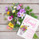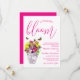 O amor está florescendo! Coleção de casamentos florais vibrantes com um buquê num vaso de mármore rodeado por borboletas e acompanhado por tipografia de guião fuchsia.