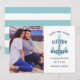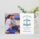 Este convite de salva datas náutico tem um tom confiante e costeiro com um motivo de âncora azul-esverdeado e parte de trás da carta listrada combinando, colocado contra o branco com tipografia naval em negrito. Personalize com a foto do casal favorita, nomes e data do casamento. Perfeito para casamentos na praia, na orla ou em destinos com uma rica paleta de cores azul-esverdeado e naval.
