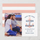 Vibrante e bronzeado, este salva data náutico apresenta uma âncora de coral quente e um fundo de listras ousadas, combinado com tipografia clássica navy para um visual litorâneo animado. Adicione sua foto de casal, nomes e data de casamento para torná-lo exclusivamente seu. Ideal para casamentos de verão na praia, destino tropical ou à beira-mar.