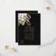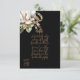 Em texto elegante dourado em um fundo preto que combina com o conjunto de convites do mesmo design