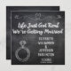 A Vida Acaba de Ficar Séria - Estamos Nos Casando cartão de aviso de casamento moderno e simples em estilo quadro negro. Cartão perfeito para enviar aos seus familiares e amigos. Design na frente e no verso. Adicione uma mensagem pessoal no verso.